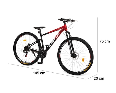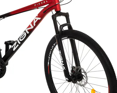 Emprende la aventura con tu nueva bicicleta de montaña Zigna Nickel de 29". Su diseño en rojo y negro va contigo.