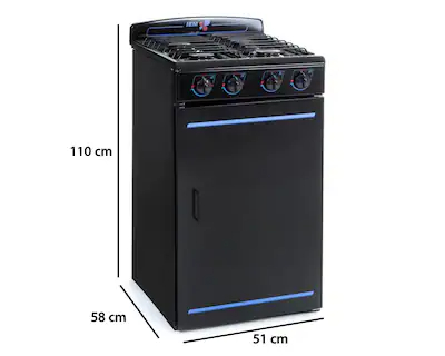 Las medidas de la estufa son 51 x 58 x 110 cm.