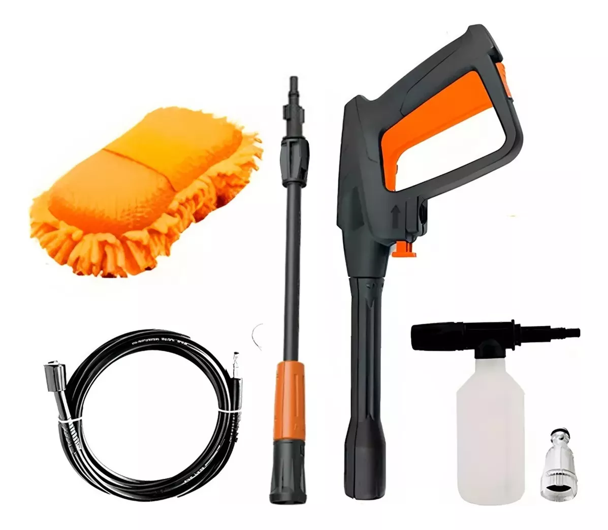La hidrolavadora DAEWOO DAX135-1600 viene con todo lo que necesitas para empezar a limpiar: pistola, lanza, boquilla ajustable de 0° a 60°, manguera de alta presión de 3 m, botella de detergente, filtro de entrada, limpiador de boquilla y esponja. Su diseño compacto y fácil de transportar te permitirá llevarla a cualquier lugar donde necesites limpiar de manera rápida y eficiente. ¡Adquiere ya la hidrolavadora DAEWOO DAX135-1600 para una limpieza más fácil y efectiva!